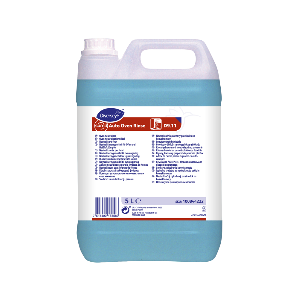 Течен високо концентриран киселинско средство за плакнење и отстранување каменец на рерни – конвектомати на база лимунска киселина до 5% и нејонски сурфактанти до 5%.